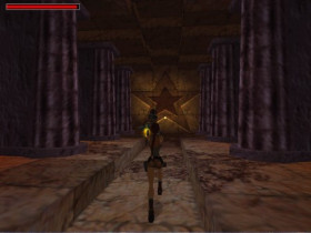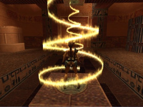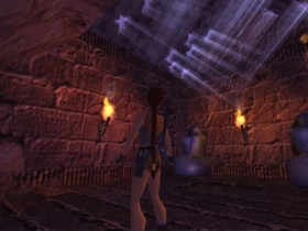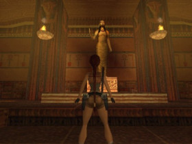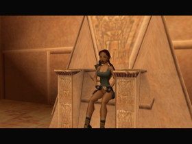 Sie sitzt auf den Thron von Kleopatra und schaut sich um, kurz danach kommen aber die Leibwachen, die diese Blitze verschiessen und dann springt Lara wieder auf.